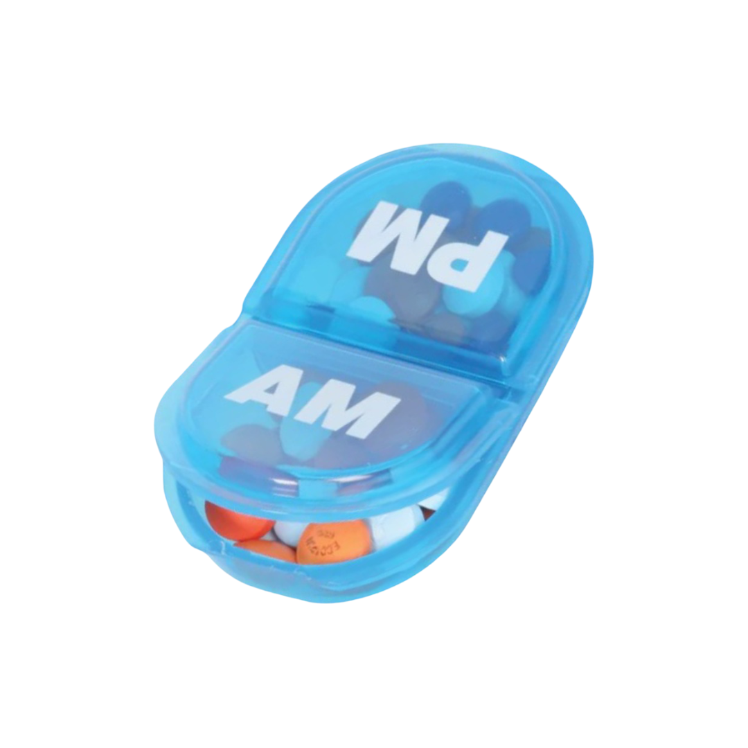 Daily AM/PM Pill Planner is a compact, easy-to-carry organizer with two spacious compartments for morning and evening medications. Perfect for keeping your daily doses on track at home or on the go.