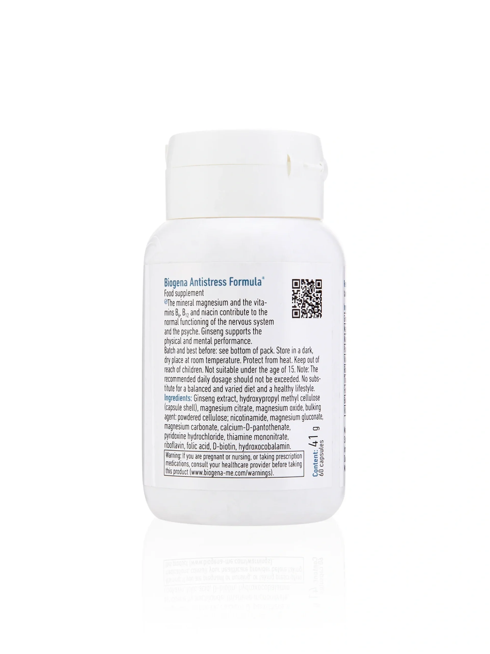 Antistress Formula provides natural support with premium ginseng root extract, magnesium, and B vitamins to support nerve metabolism and enhance concentration.