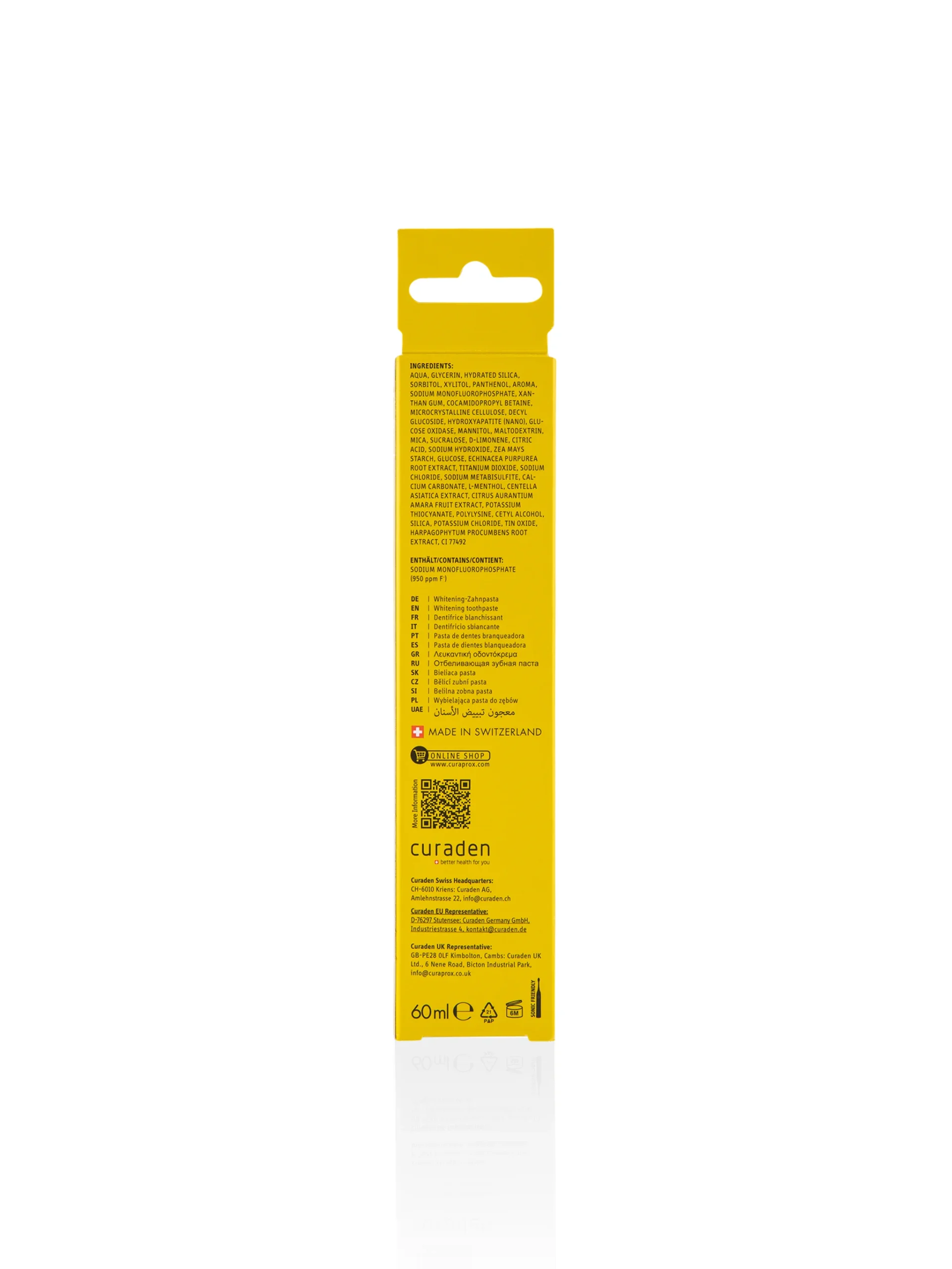 The formula – freshness, herbs, oral health Fluoride is a must. Hydroxyapatite and glucose oxidase, along with natural ingredients, ensure an enzymatic whitening effect that’s gentle on your teeth. And xylitol, birch sugar, tastes sweet as it strengthens your teeth and tackles bacteria.
