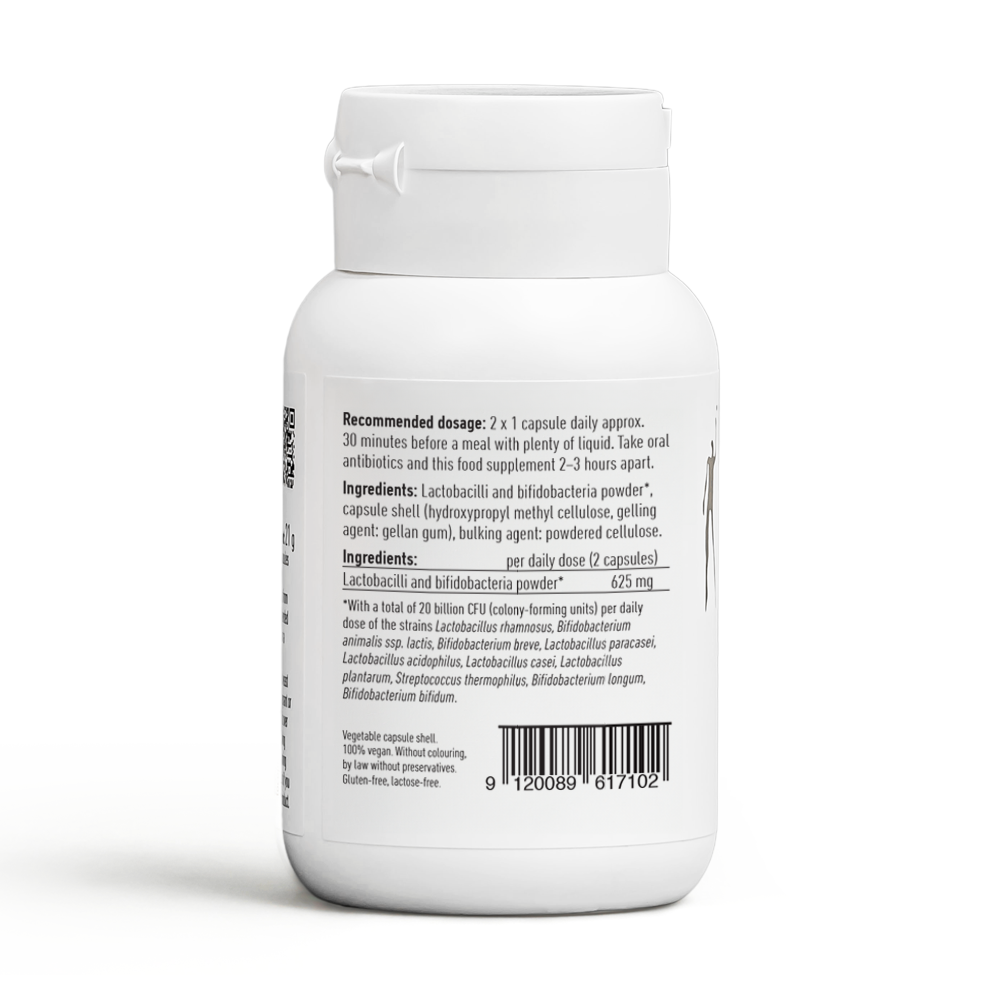 2 capsules daily, 30 minutes before a meal, with plenty of water. Take oral antibiotics and this food supplement 2-3 hours apart. Contains a total of 60 capsules (1 Month Supply).