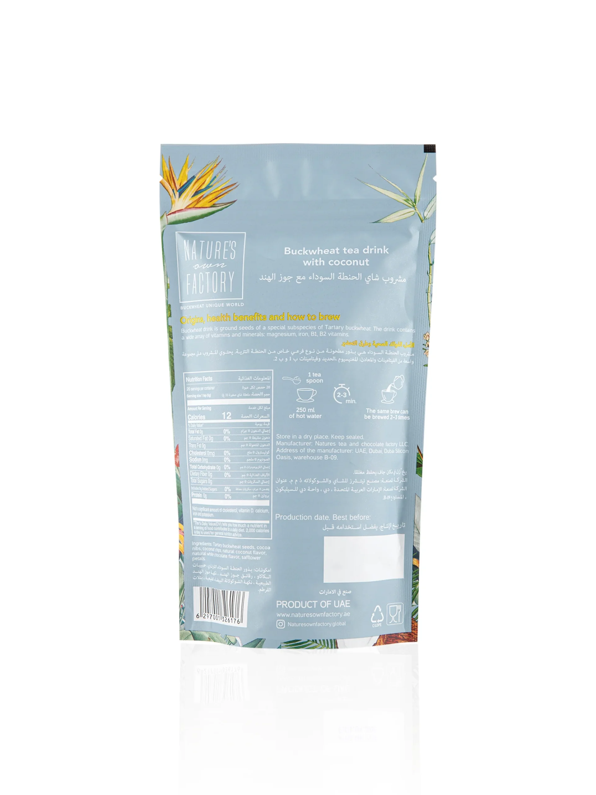 Nature’s own factory’s buckwheat tea is possible only with premium buckwheat, which we exclusively bring from the slopes of Taiwan. Buckwheat tea drink has a rich taste and aroma of freshly baked cookies. We granulate, press and then roast buckwheat seeds to preserve its biscuit notes and vanilla flavor in the finished drink.