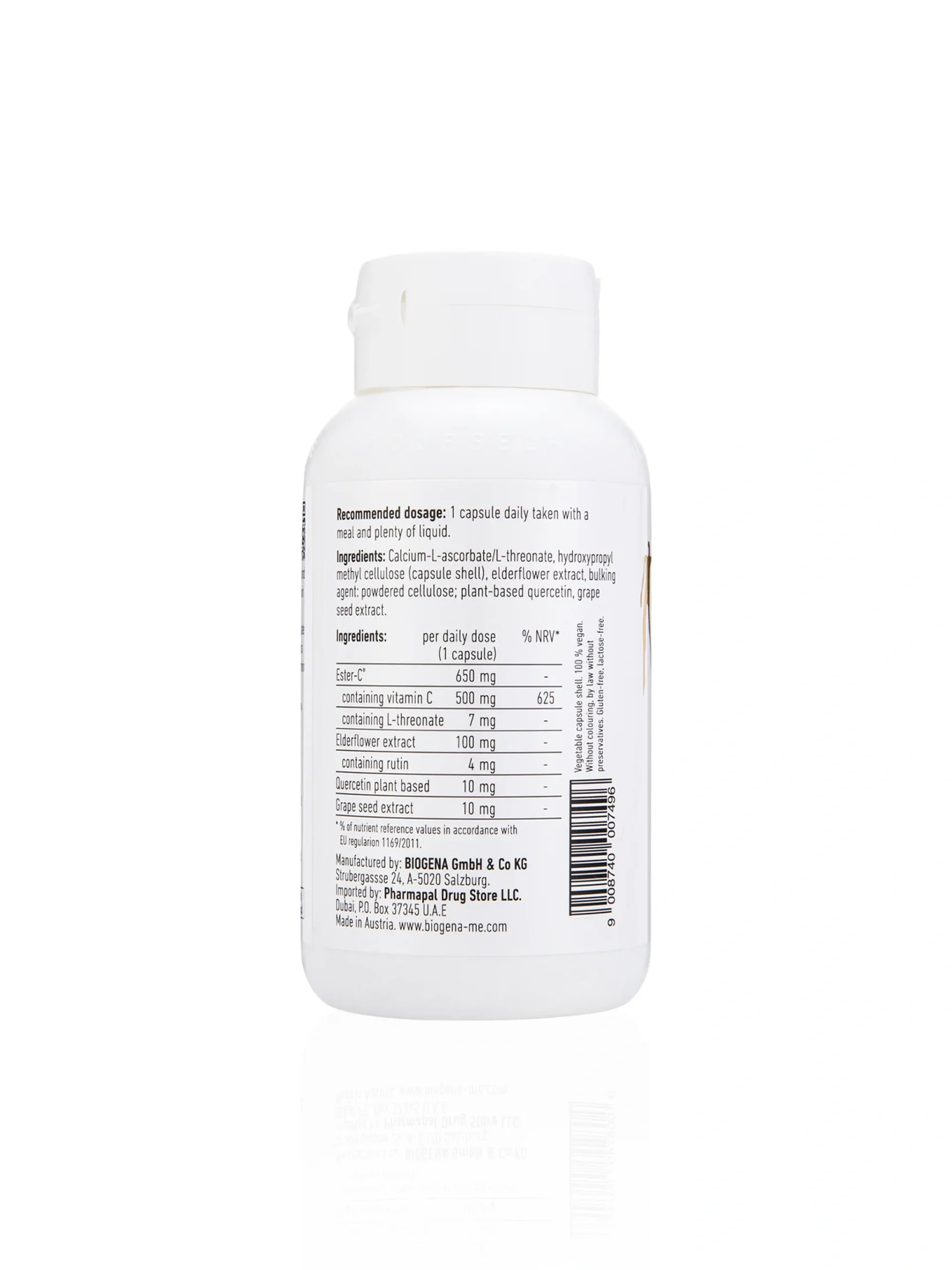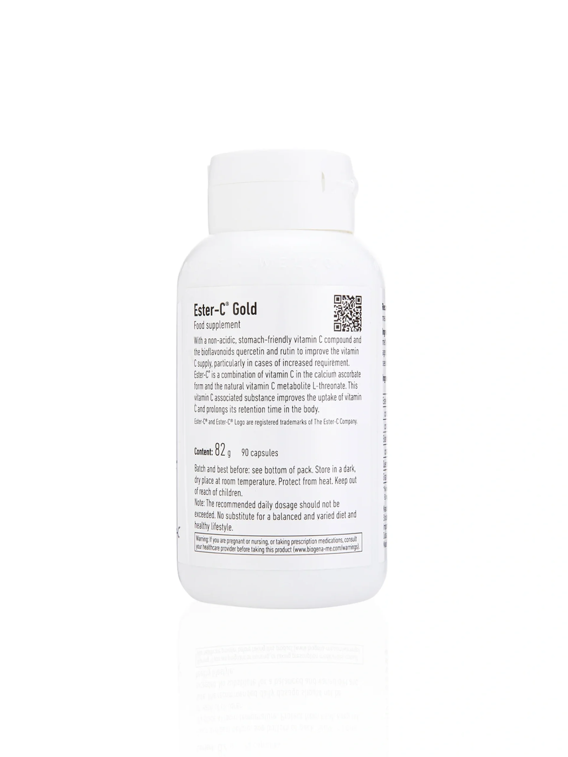 Ester-C is a unique vitamin C complex containing stomach-friendly vitamin C and the vitamin C metabolite L-threonate. L-Threonate enhances the absorption of vitamin C into the body and prolongs its presence in immune cells. Ester-C is designed to meet additional requirements, such as those in competitive sports, among smokers, or in environments with high pollution levels. It supports the immune system, particularly during periods of heightened stress, and promotes the health of connective tissue and skin. This non-acid, stomach-friendly vitamin C complex is also suitable for individuals with sensitive stomachs.