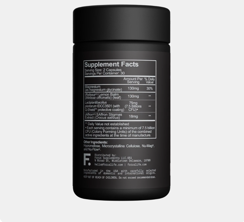 Clinically studied ingredients like Affron® Saffron and Relissa® Lemon Balm help reduce tension, calm the nervous system, and improve daytime mood. -