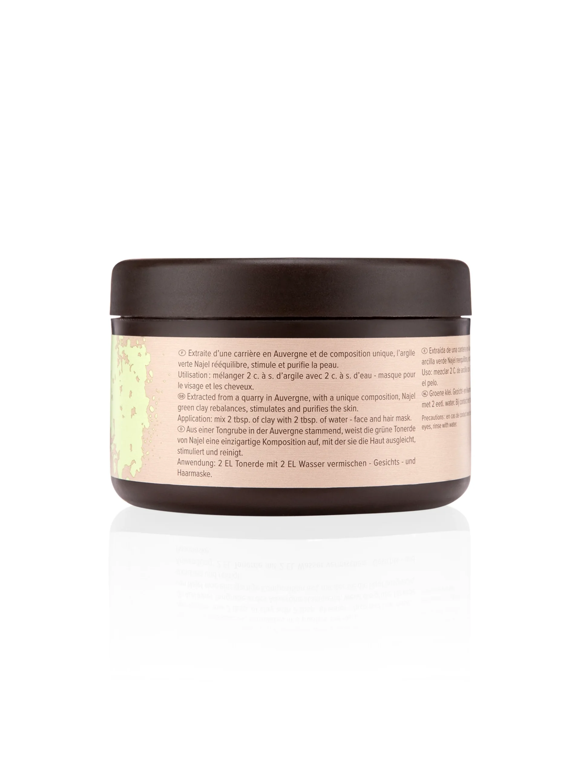 Najel’s 100% natural green clay is sourced from a quarry in Auvergne near Puy-en-Velay, ensuring high purity and quality. Rich in iron oxide and low in minerals, this clay is prized for its ability to rebalance, stimulate, and purify the skin.