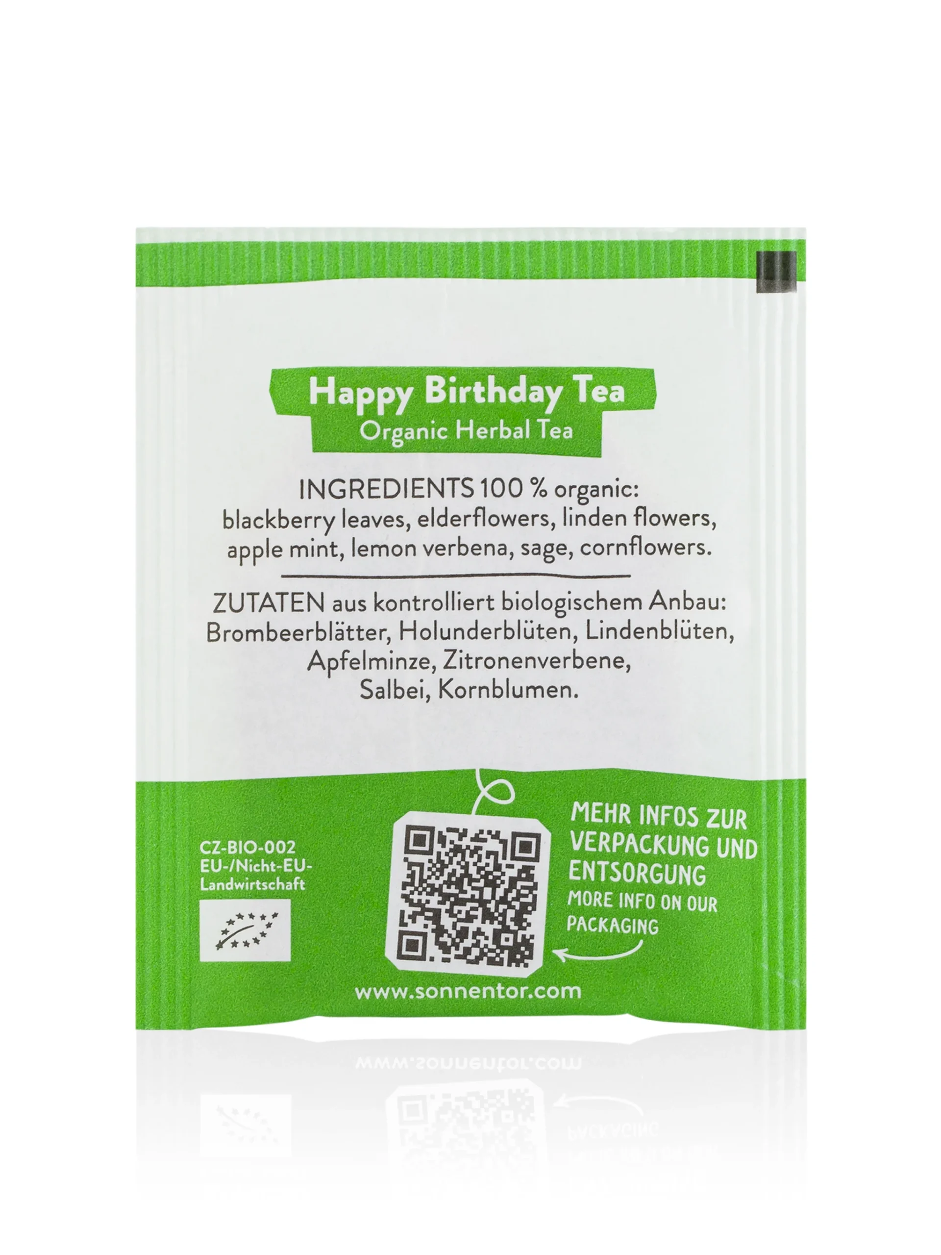 Sonnentor Happy Birthday Tea Organic Double Chamber Bag is a celebratory herbal blend crafted to add a touch of joy to special occasions. Made with organic ingredients, this tea features a delightful mix of herbs that offer a refreshing and uplifting experience. Caffeine-free and soothing, it’s perfect for enjoying during birthday celebrations or any time you want to celebrate life’s special moments.