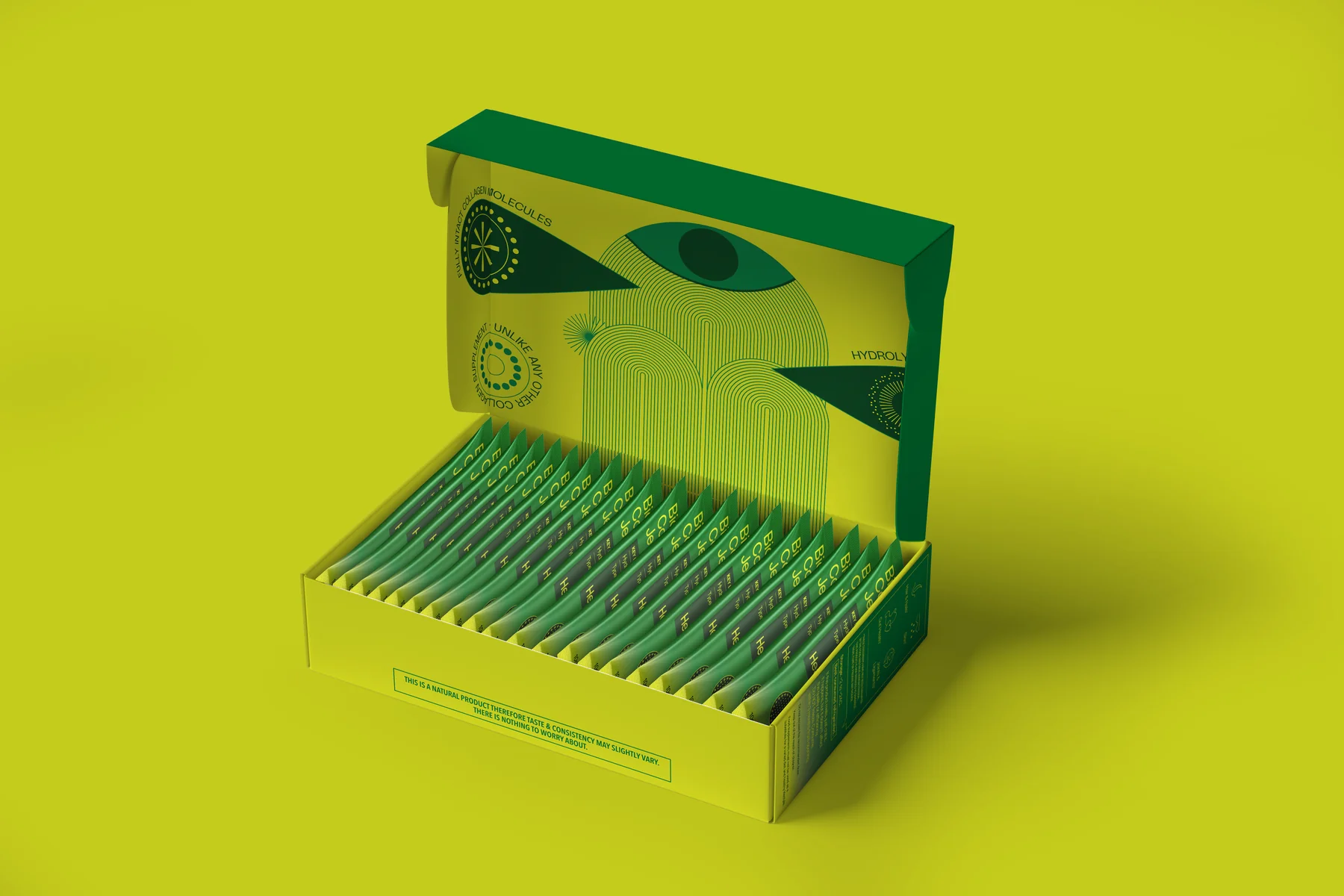 Convenient single-serve jelly sachets with bioactive collagen types I, II & III in a zesty key lime flavor, ideal for on‑the‑go skin, joint, and gut support.