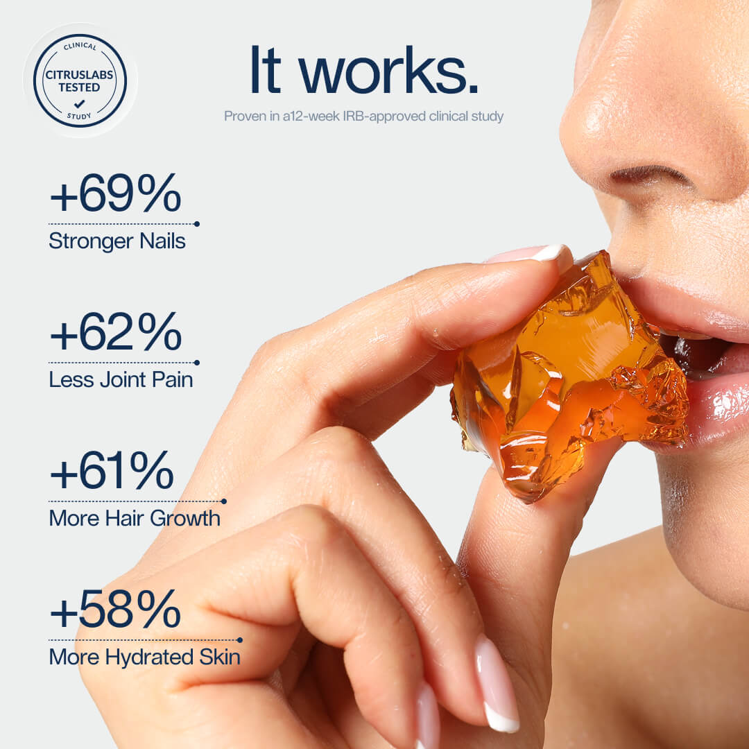 • Rapidly absorbed bioactive collagen for skin, hair, nail, gut, and joint health