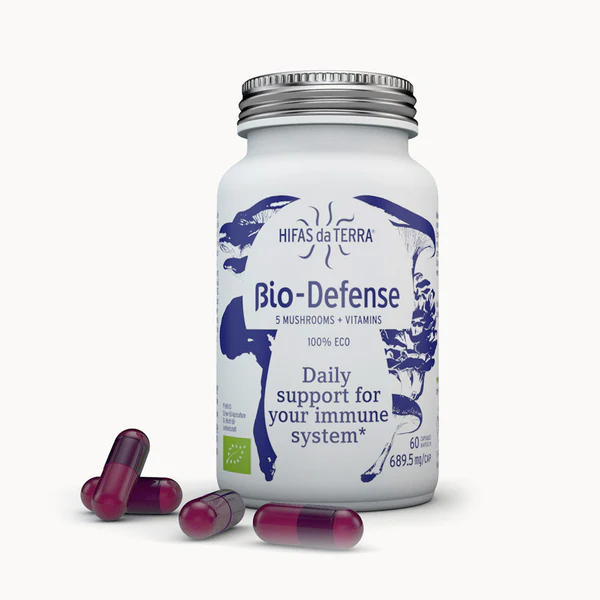 Bio‑Defense combines organic powders of Reishi, Shiitake, Maitake, Oyster, and King Oyster mushrooms: each supplying immune-modulating beta- and alpha-glucans. Fortified with acerola vitamin C and vegan vitamin D (from lichen), this formula boosts immune resilience and gut health. Its vegan, gluten-free, non-GMO formulation reflects Hifas da Terra’s commitment to quality: traceable ingredients, sustainable extraction, and rigorous testing.