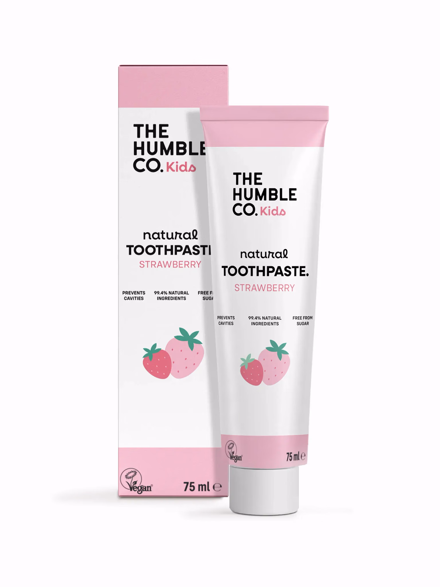 The Humble Co. Natural Toothpaste – Strawberry is a dentist-developed, eco-friendly toothpaste crafted with 99.4% natural origin ingredients. It contains Sodium Fluoride (1450 ppm) to effectively protect against cavities and strengthen enamel.