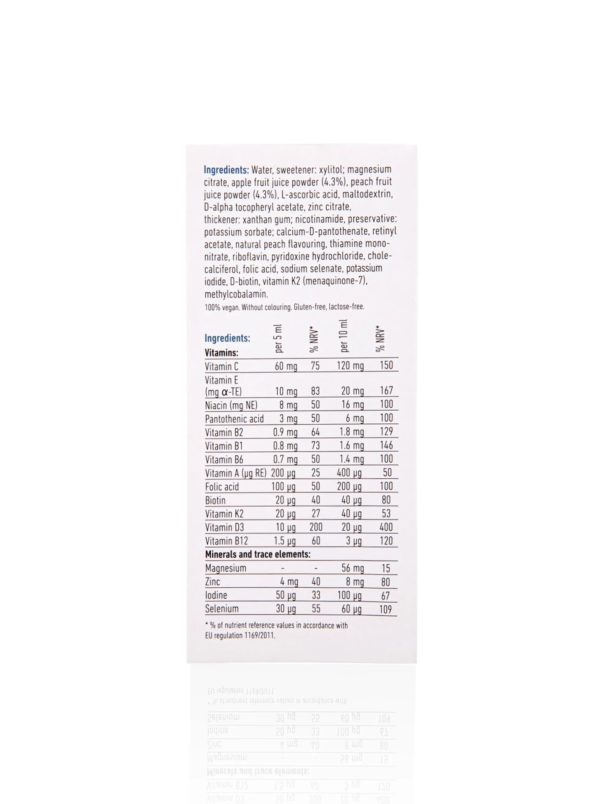 Balanced mix of vitamins, minerals, and trace elements in a convenient peach-flavoured juice