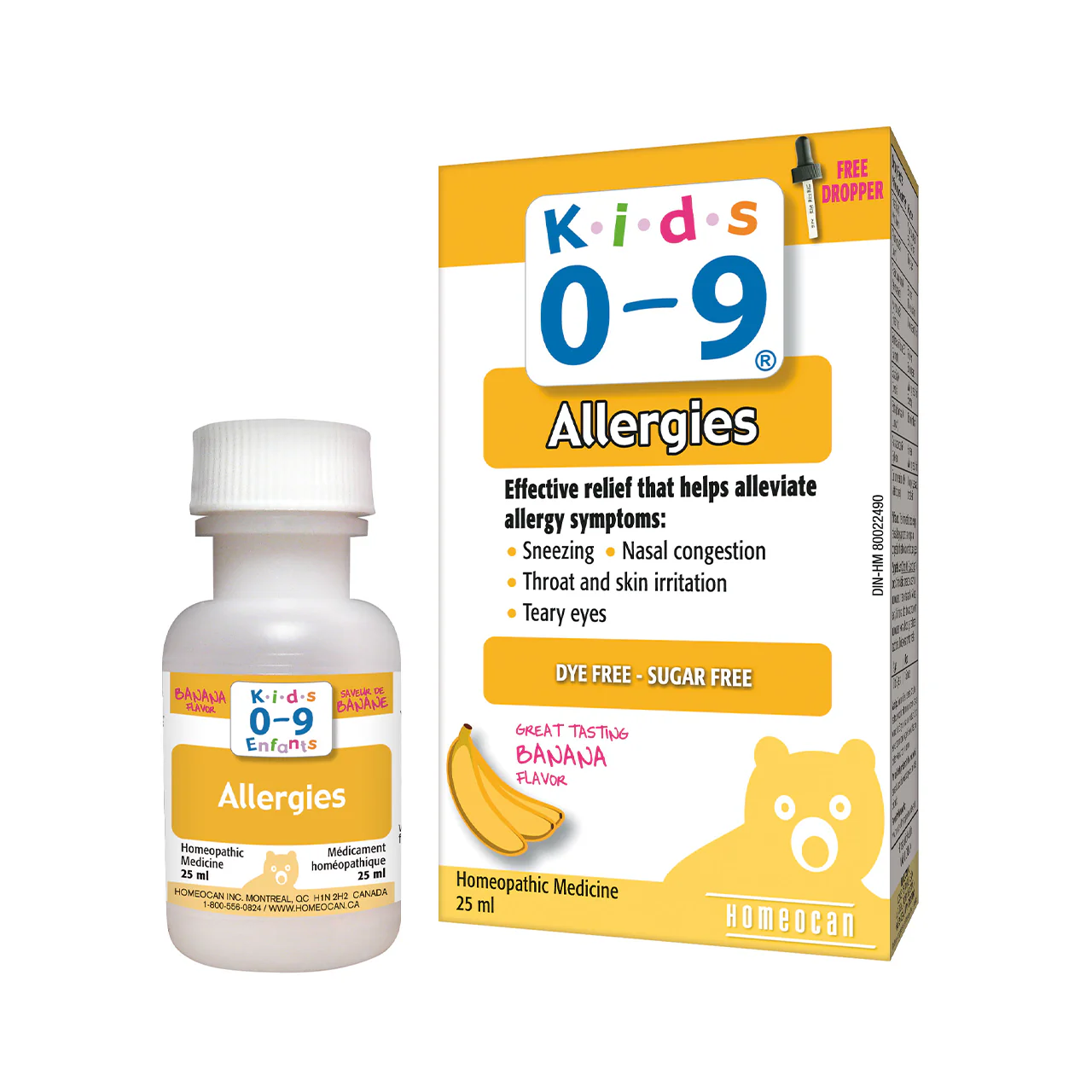 The Kids 0-9 All Allergies Oral Solution is a homeopathic medicine specially designed to help children find relief from seasonal allergy symptoms. Formulated with natural homeopathic ingredients, it helps ease sneezing, nasal congestion, throat and skin irritation, and watery eyes. The solution is sugar-free, dye-free, and free of common drug ingredients such as pseudoephedrine and acetaminophen, ensuring a safe, child-friendly option. Its pleasant banana taste and included dropper make dosing easy and stress-free.