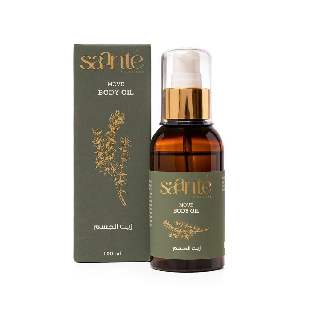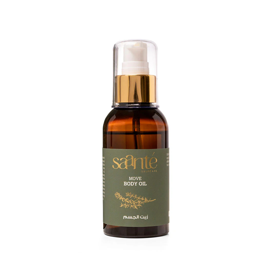 Discover relief in motion with Saanté Move Body Oil—a powerful blend of therapeutic essential oils and deeply nourishing botanicals. Crafted to ease muscle and joint tension, this body oil supports faster recovery from soreness, stiffness, cramps, and everyday aches. Infused with thyme and clove oils, it delivers natural anti-inflammatory and pain-relieving benefits, while rosemary and juniper stimulate circulation to revitalize tired muscles.