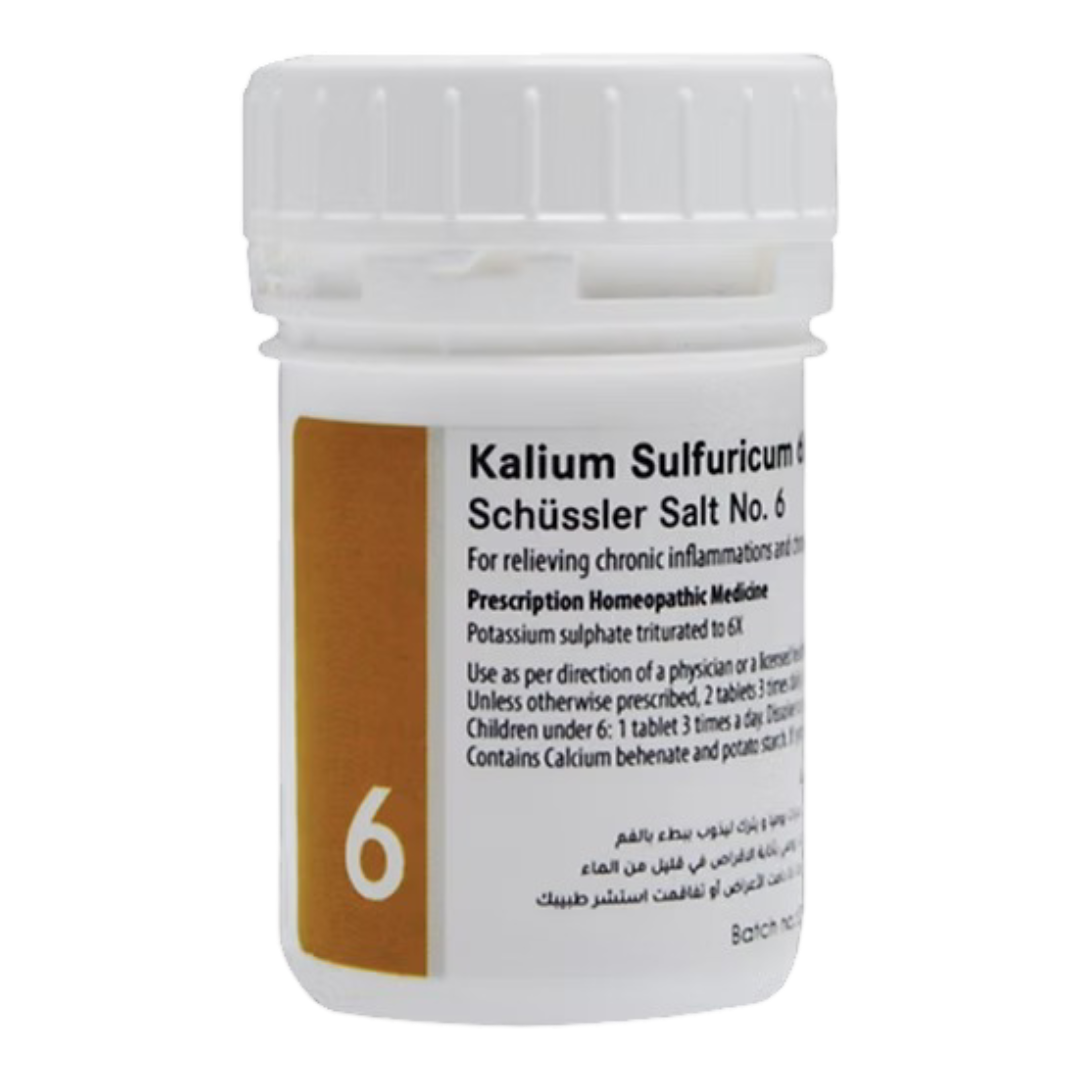 Kalium Sulfuricum 6X is essential for cellular respiration and detoxification. It helps the body eliminate waste products and supports the maintenance of healthy skin by improving cell oxygen supply and renewal. It is also beneficial in relieving chronic inflammation and managing chronic skin disorders.