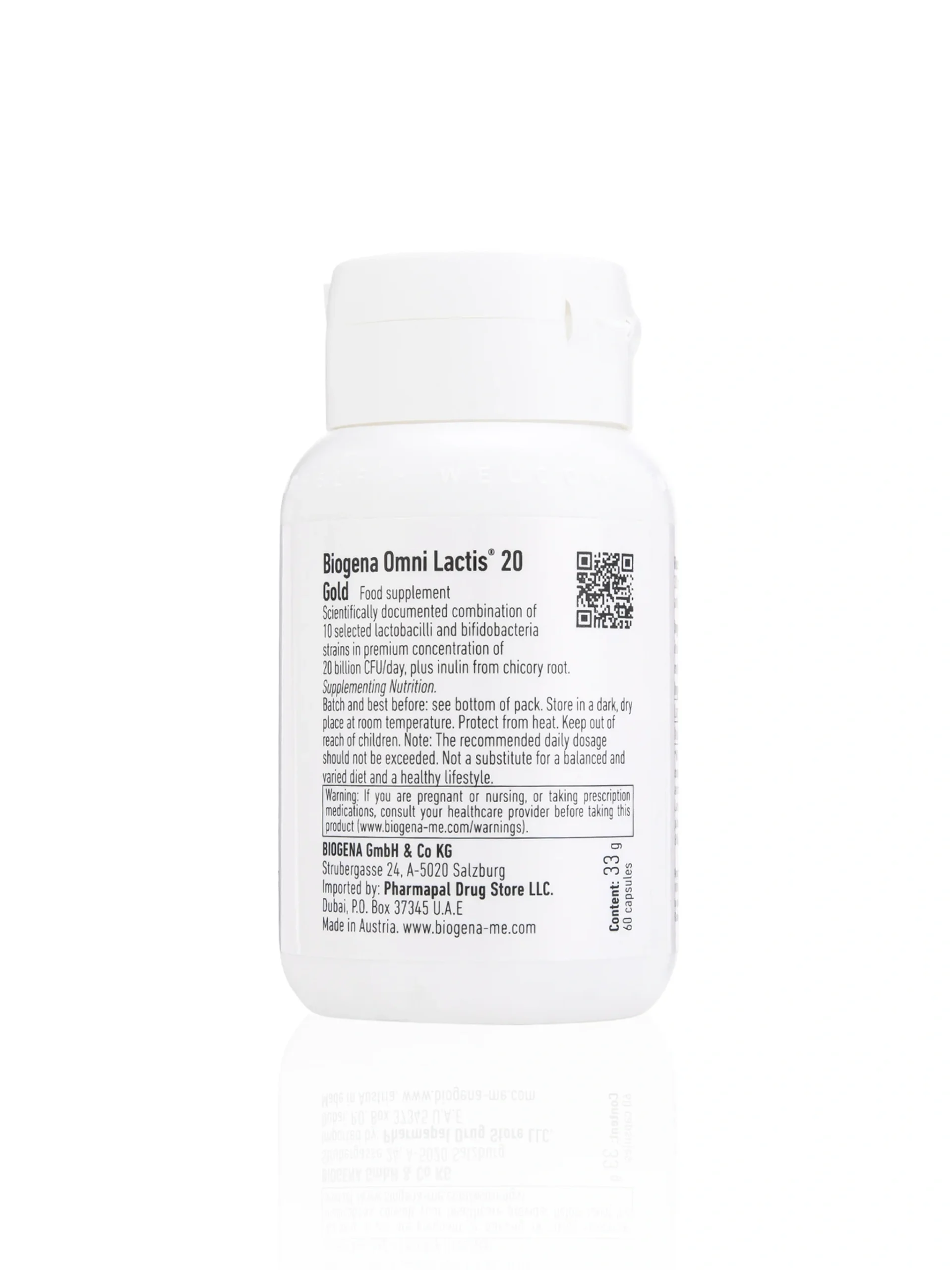 Introducing Omni Lactis 20 Gold, a multi-strain preparation featuring 10 scientifically tested bacterial strains sourced from NordBiotic. Encapsulated in patented DRcaps (Delayed Release) for safe gastric passage and protection of bacteria from stomach acid, this formula also contains natural dietary fiber inulin (Fibruline DS2) from chicory root. With an upgraded concentration of lactobacteria and bifidobacteria, Omni Lactis 20 Gold offers premium quality and efficacy. Formerly known as Omni Lactis 10 Caps, this enhanced formula represents the latest advancements in gut health support.