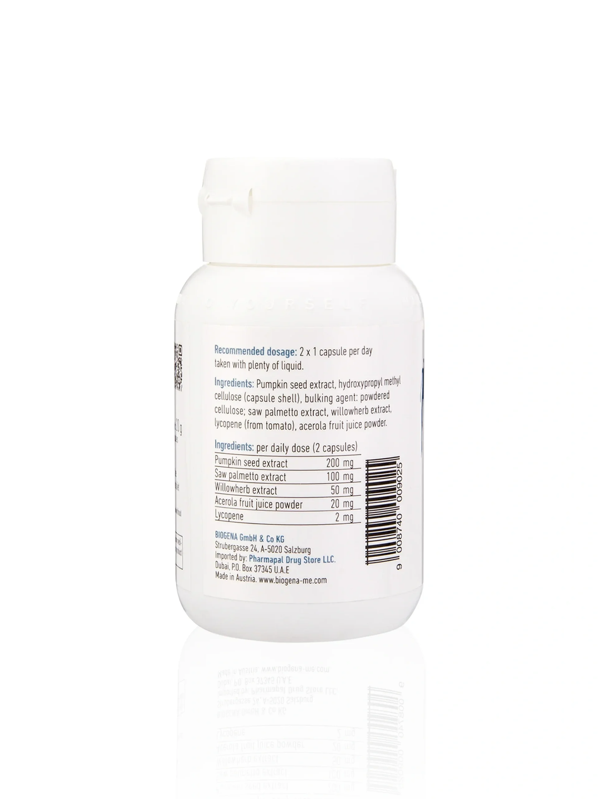 Biogena Prosta Caps is a specialized formulation designed to support the normal functioning of the male urinary system, particularly in men over the age of 45. It contains carefully selected plant extracts known for their beneficial effects on bladder and prostate health.