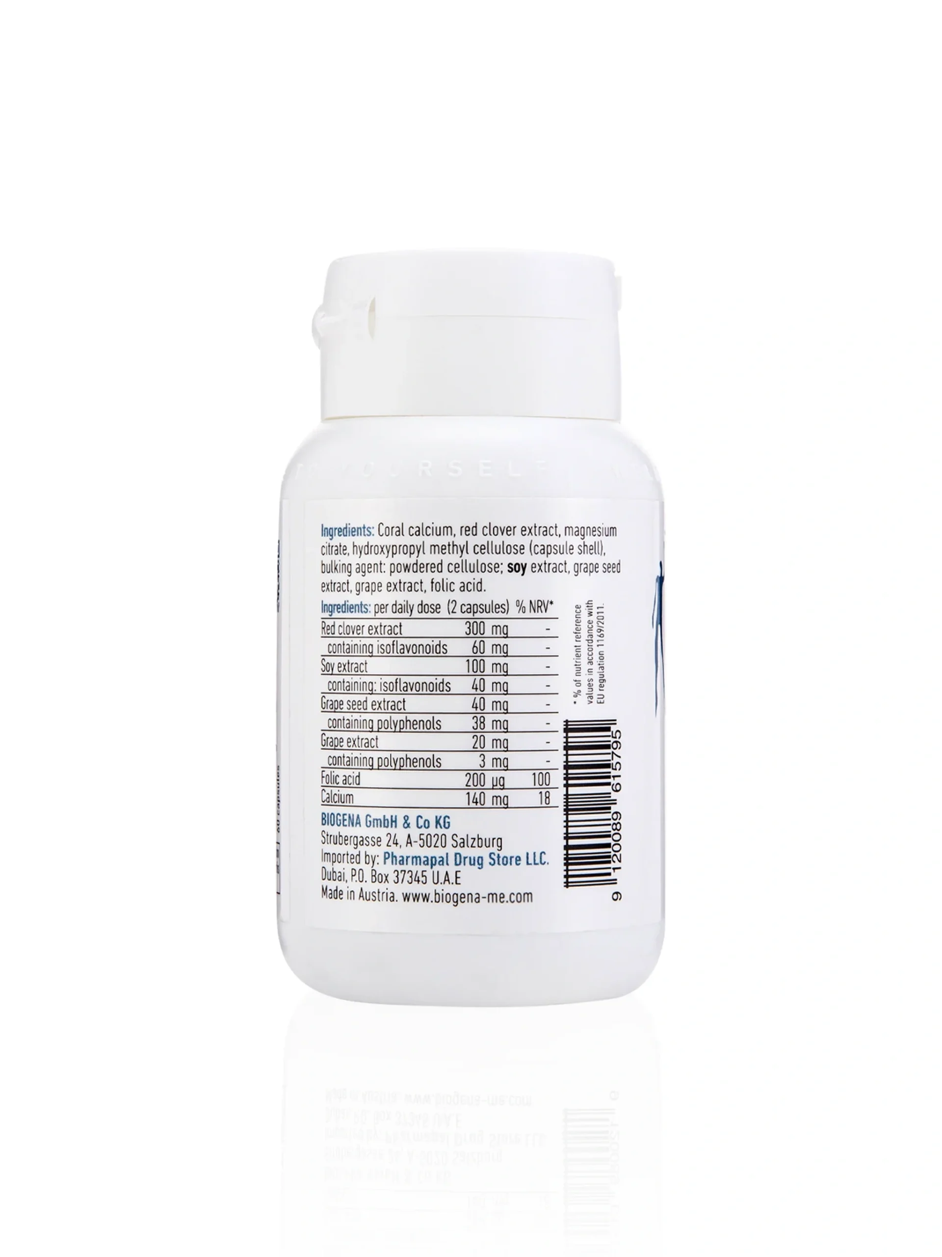 A clean, plant-based capsule formula designed to provide phytoestrogen-rich support for women over 40, focused on balancing hormonal changes, supporting bone health, and maintaining well-being during menopause.