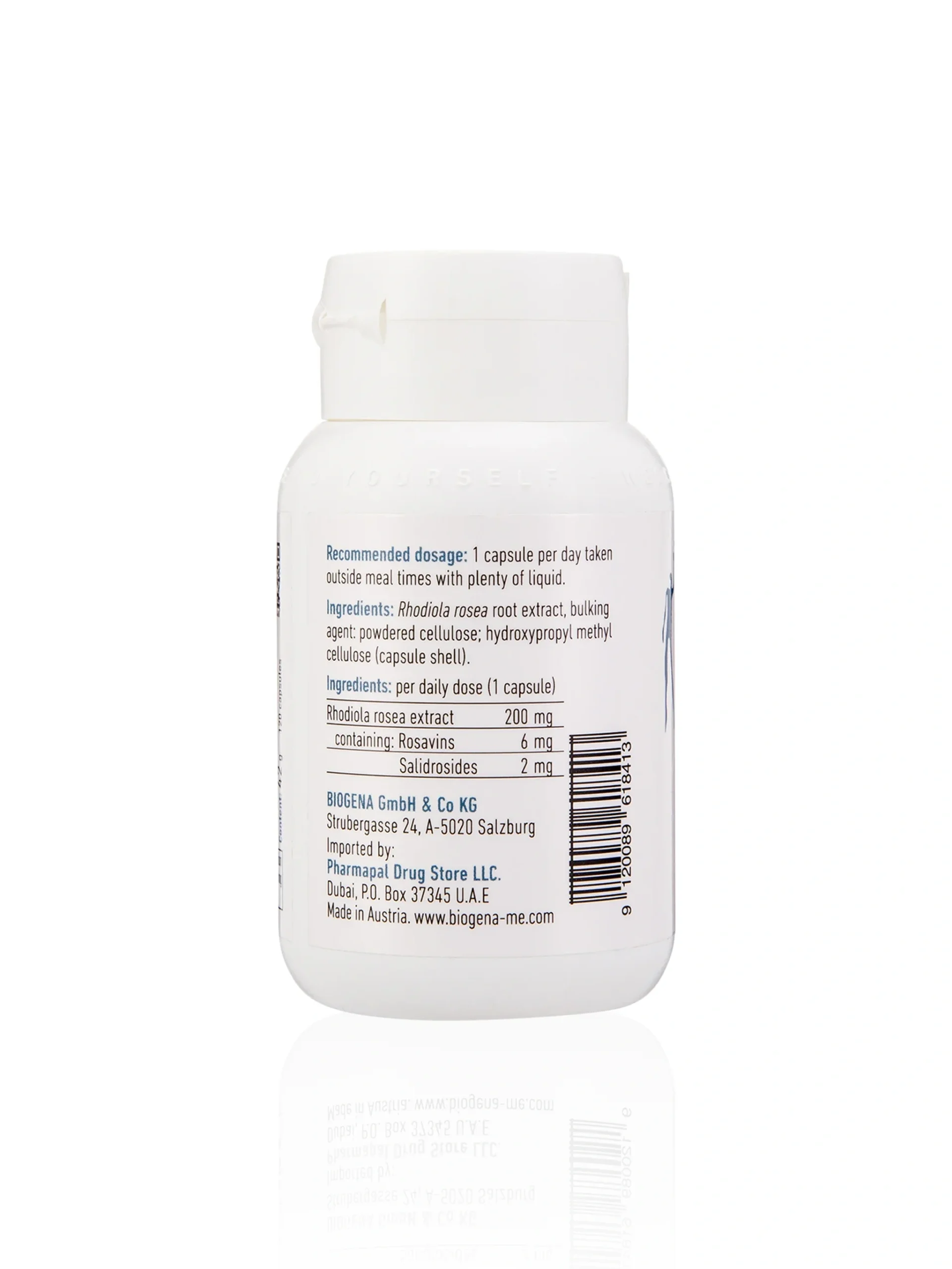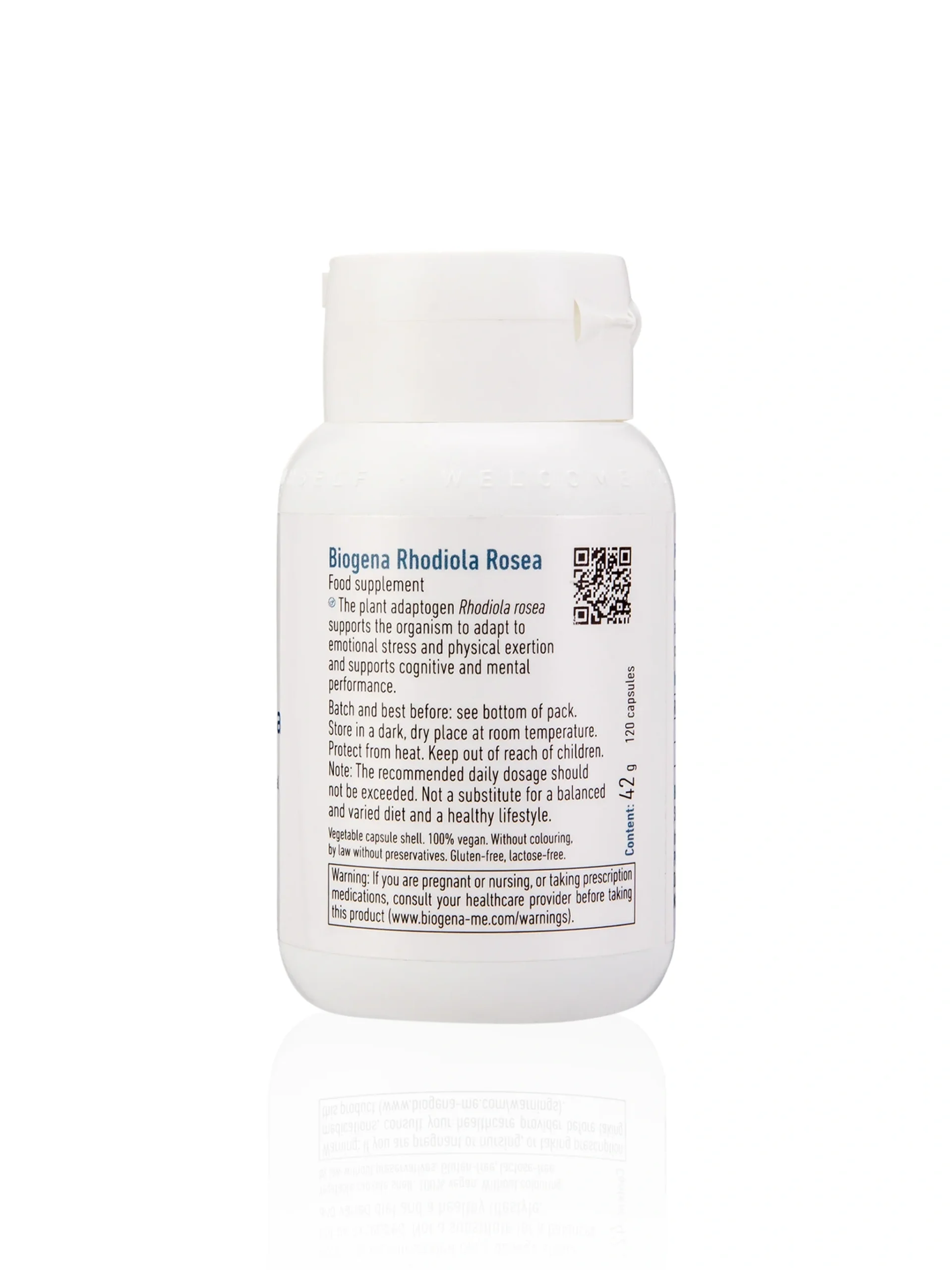 Biogena Rhodiola Rosea Formula is a premium adaptogen supplement featuring standardized golden root extract (high in rosavins and salidroside) to help enhance stress resilience, mental clarity, and physical stamina during demanding times.