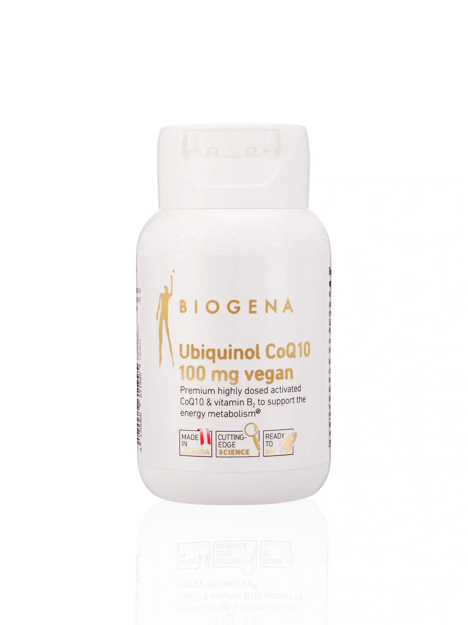 Highly dosed premium Coenzyme Q10, activated with Vitamin B2, designed to support the energy metabolism specifically tailored for vegans and vegetarians.