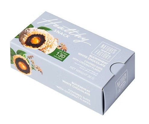Cocoa butter, whole milk powder, coconut sugar, Tatar buckwheat seeds, natural emulsifier sunflower lecithin, coconut flakes.